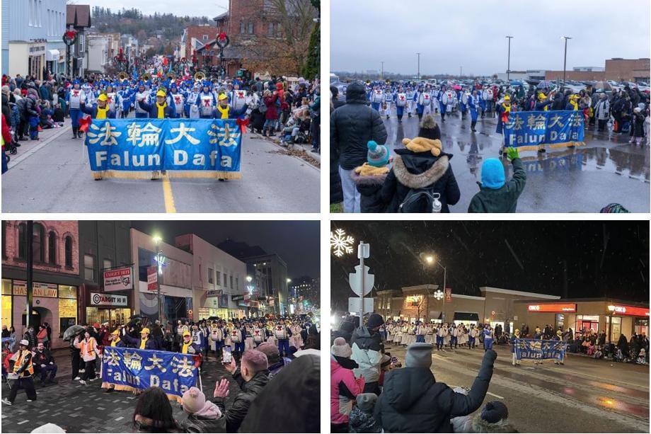 加拿大安大略各地的聖誕節慶活動紛紛登場,應多方邀請,由法輪功學員組成的天國樂團,在十一月十五和十六日參加了五場聖誕遊行,不僅為人們帶去節日的祝福,還將法輪大法真、善、忍的祥和與美好傳遞給各地居民。