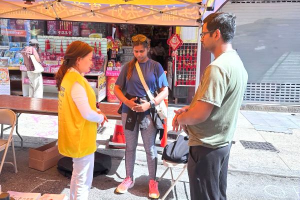 第二天下午,張先生再次來到法輪功展位前。他說,他的鄰居就因為修煉法輪功被警察抓走,他曾在澳大利亞、荷蘭等國家,都見過在旅遊景點講真相的法輪功學員,但是沒有深入了解過真相。