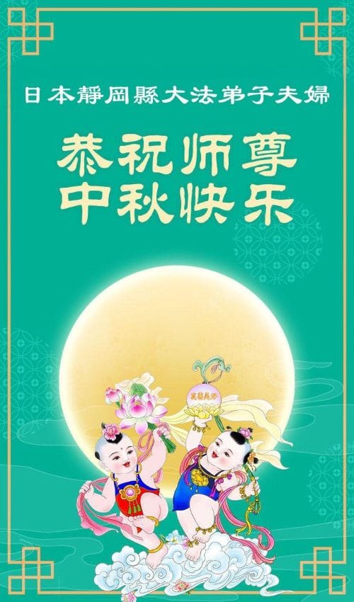 日本靜岡縣大法弟子夫婦恭祝師尊中秋節快樂!