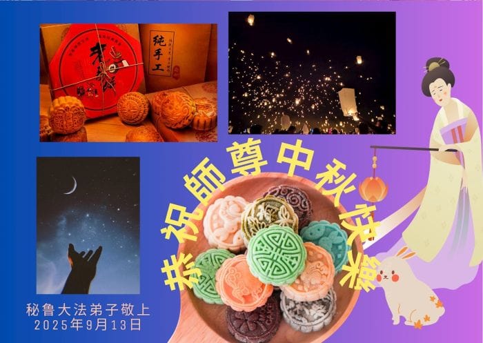 【明慧之窗記者宋芙瑛編輯】在這闔家團圓的中秋佳節,各國各族裔法輪功學員感恩李洪志師父,想念師父,恭祝師父節日快樂!