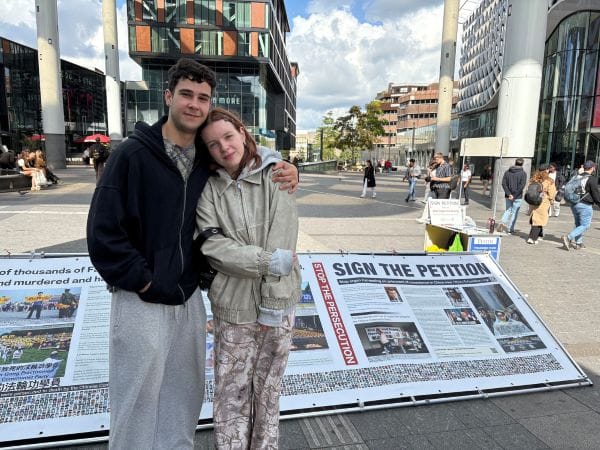 海妮(Henny)和約翰(John)夫婦二人聽聞中共活摘法輪功學員器官的暴行後,在向G7+7提交的請願書上簽名,支持法輪功學員反迫害。