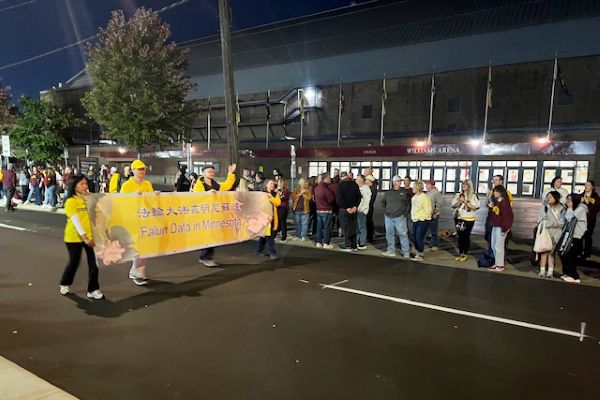 明尼蘇達大學法輪功雙城俱樂部自從成立以來,已經有十幾年參加返校日遊行活動,每一次都受到觀眾的熱烈歡迎。
