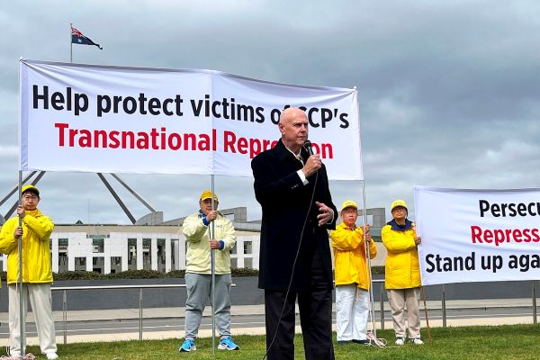 澳洲法輪大法學會發言人約翰・戴樂(John Deller)在集會上發言時表示:「跨國鎮壓是一種跨越國界的鎮壓形式,透過中共體制從中國大陸流出的這種鎮壓,影響範圍很廣。」
