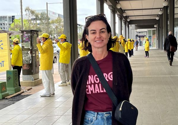 霍莉(Holly)是一位來自澳洲北部的人權活動家,十月二十九日早晨,當看到法輪功學員在首都市中心街頭展示真相橫幅和五套功法,於是停下腳步了解詳情。隨後在反迫害的請願書上簽了名。