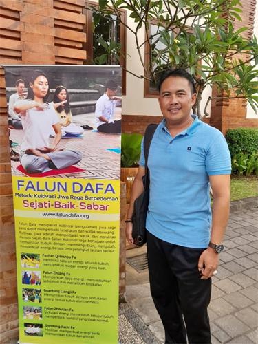 北庫塔區政府事務代理負責人蓋德・巴尤・普拉瑪納(Gede Bayu Pramana) 在此次活動中第一次學煉法輪大法的五套功法。他說:「雖然今天是我第一次煉法輪功,但我已經感覺到自身的變化。我感到更加平靜。昨天我還覺得頭暈,但今天煉功後感覺好多了。」