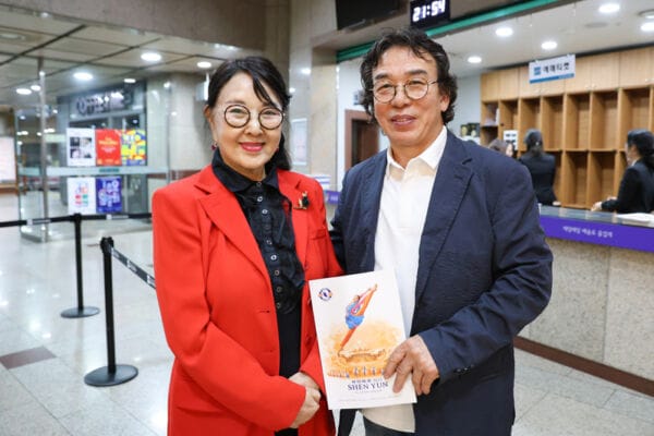 二零二五年五月九日晚,韓國音樂著作權協會(KOMCA)理事、歌劇作曲家吳淑子和丈夫、薩克斯演奏家韓永烈觀看了神韻環球藝術團在韓國果川市民會館的首場演出。