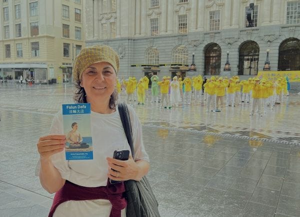尼萊(Nilay)是一名醫生,也是一名瑜伽老師。當日路過廣場時,被法輪功學員平和的煉功場景吸引,並主動分享自己的感受。