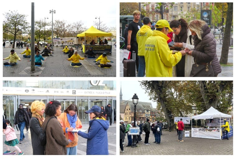 十一月八日星期六,法國東部地區法輪功學員在科爾馬(Colmar)市中心的講真相活動,吸引了當地的居民和來自世界各地的遊客。很多人前來了解法輪功,對修煉法輪功表現出極大的熱情。許多人簽署了請願書,要求結束與器官販賣相關的迫害。