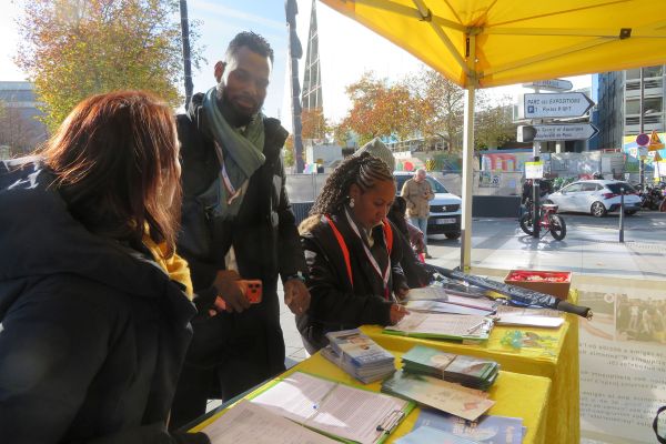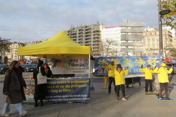 一年一度的「法國市長沙龍」於二零二五年十一月十八日至二十日在巴黎凡爾賽門的展覽館舉行。藉此時機,法輪功學員於十八日和二十日在展覽館前,向前來參觀的各界人士講述法輪大法真相、演示法輪功功法、徵集簽名呼籲共同制止中共迫害。