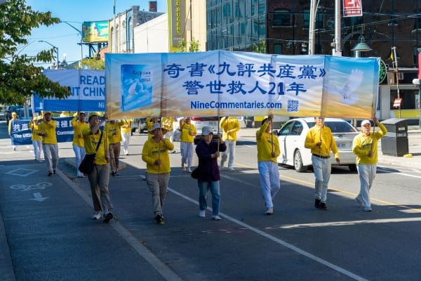 主圖説明:二零二五年九月二十八日, 多倫多法輪功學員在當地市中心舉辦反迫害遊行活 動,呼籲制止中共迫害,聲援中國民眾退出中共黨、團、隊組織。