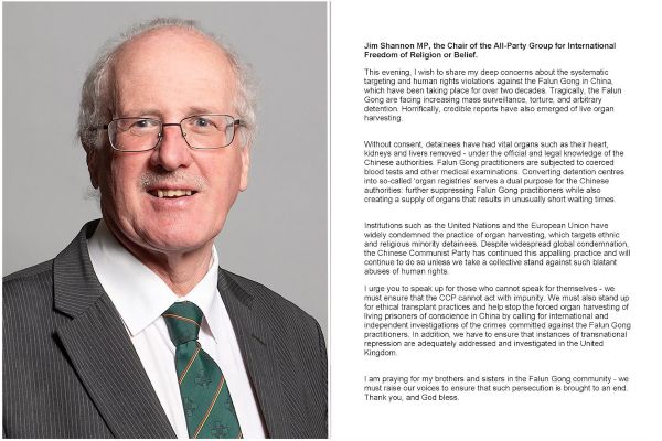 國際宗教或信仰自由跨黨派議會小組(APPG for International Freedom of Religion or Belief)主席,吉姆・香農議員(Jim Shannon MP):