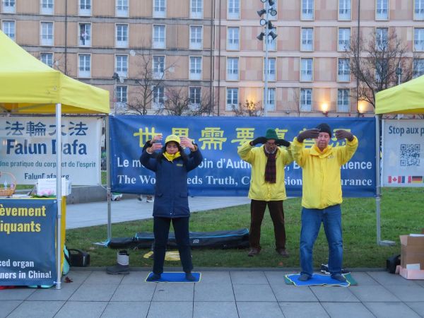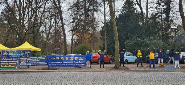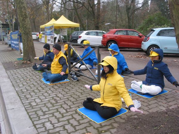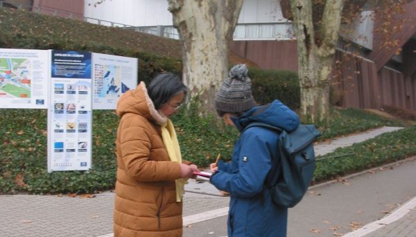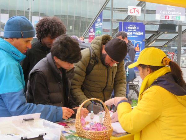 二零二五年十二月四日,來自法國、德國和瑞士的部分法輪功學員,在歐洲理事會大廈前和斯特拉斯堡火車站廣場上,向各界人士發放法輪大法真相傳單,揭露中共對法輪功學員的迫害;同時徵集簽名,呼籲各界制止中共活摘器官罪行。