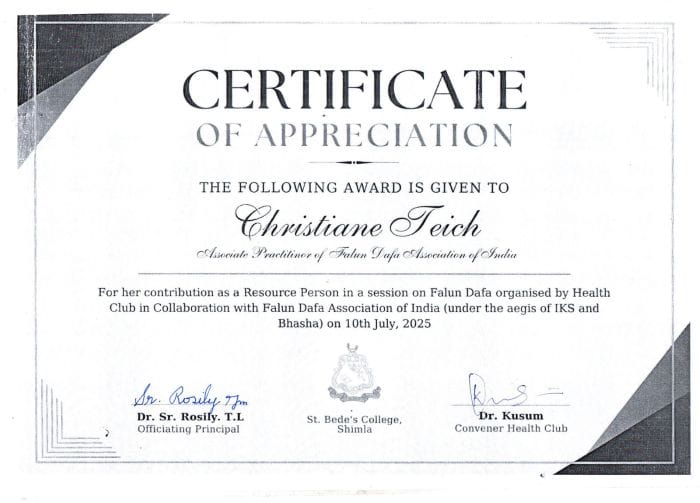 為將法輪大法帶到印度偏遠地區,一名印度法輪大法學員於二零二五年七月前往喜馬偕爾邦(Himachal Pradesh)首府西姆拉(Shimla),在當地學校和機構舉辦教功活動。在這一個月裏,她在十一家機構舉辦了十四場教功活動,參加人數約兩千人(本文主圖)。
