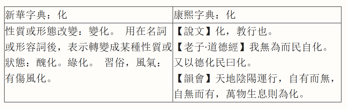 兩相比較就能看出傳統的「化」和現在的「化」不僅高下不同,簡直是天壤之別。中華文化中,「化」的原義,萬物生息為化,化育萬物。這是中華文化中包含的真機和神跡。而共產紅魔把人的思想空間壓縮,使其變得狹隘,也就使人脫離了文化中的神傳天機。