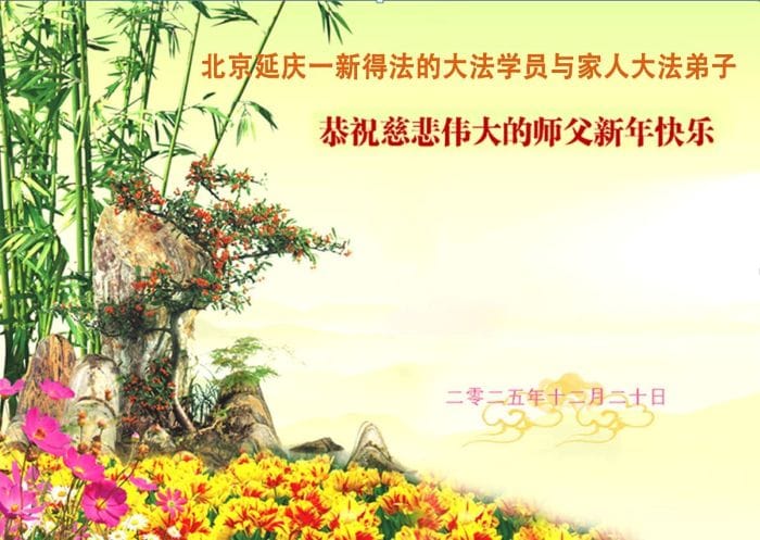北京延慶一新得法的學員與家人大法弟子恭祝師父新年快樂!