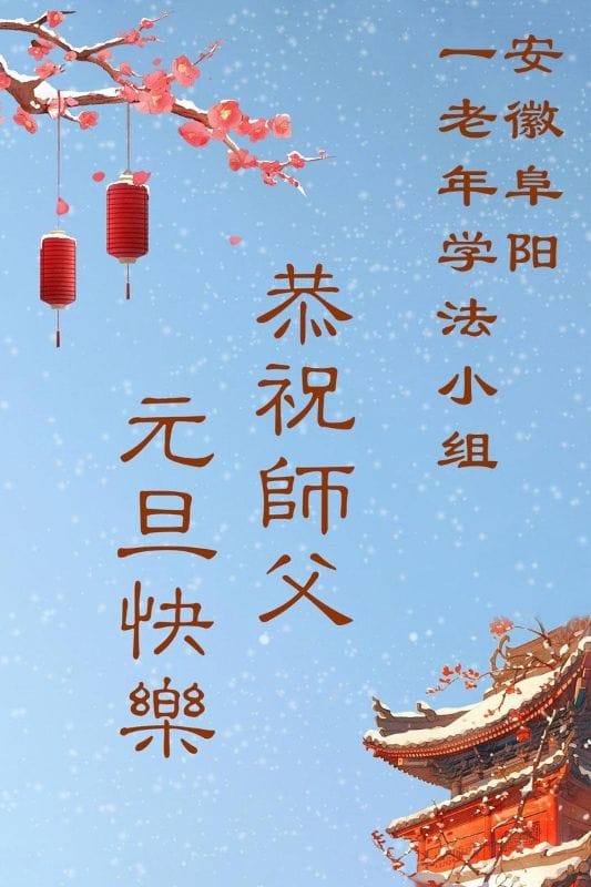 安徽阜陽一老年學法小組大法弟子恭祝師父元旦快樂!