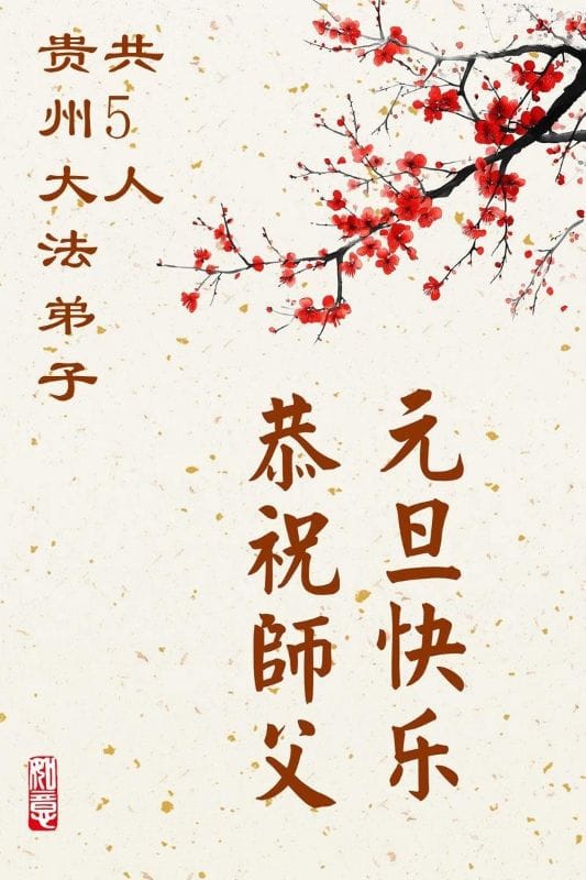 貴州貴陽五人學法小組大法弟子恭祝師尊元旦快樂!