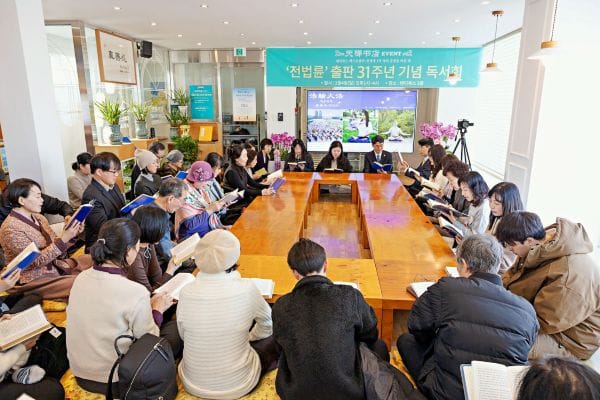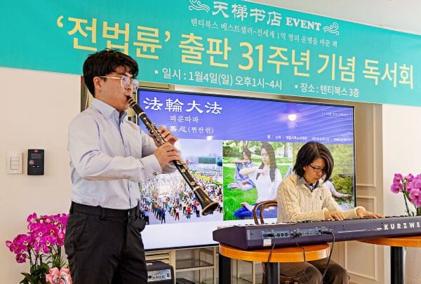 二零二六年一月四日,韓國首爾龍山區的天梯書店響起優美樂曲,拉開了紀念《轉法輪》出版三十一週年活動的序幕。