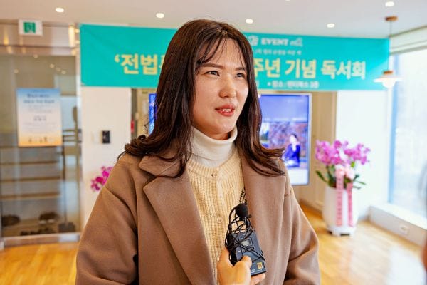 來自蔚山、從事個體經營的崔英珍(五十多歲)也分享了改善健康的經歷。他是通過顧客了解到《轉法輪》的,並認為「這絕不是普通人寫的書」,於是開始修煉。儘管盤腿打坐的煉功動作非常吃力,但堅持下來後,他曾體驗到身體彷彿騰空的感覺,隨後困擾多年的腰椎間盤問題完全康復。