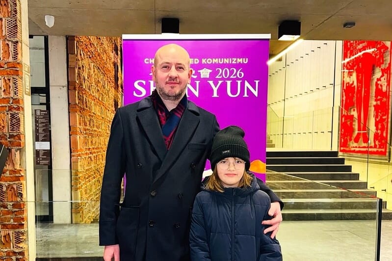 二零二六年一月十七日晚,建材貿易公司總經理和董事西爾維斯特・斯塔奇拉(Sylwester Stachyra)和家人一起觀賞了神韻演出。(大紀元)
