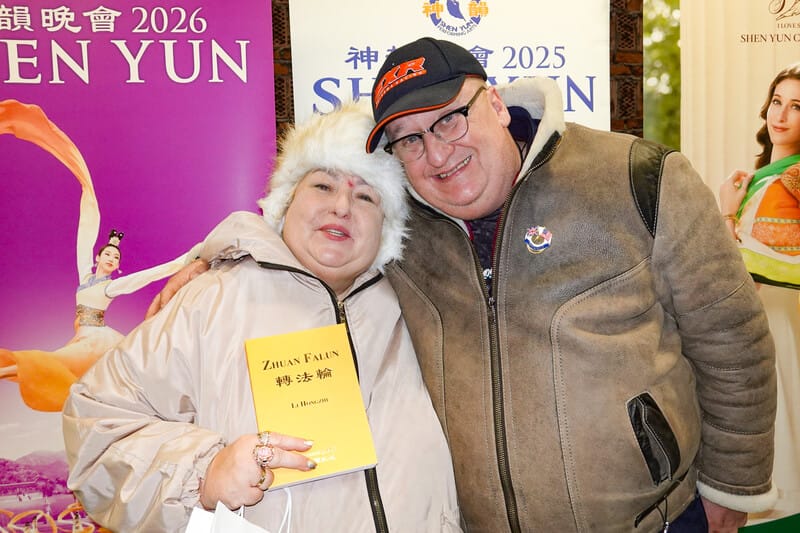 二零二六年一月十七日晚,波蘭知名教授阿卡迪烏什・馬萊克(Arkadiusz Małek)和會計師阿格涅什卡・萊什(Agnieszka Łeś)觀賞了神韻演出。(大紀元)