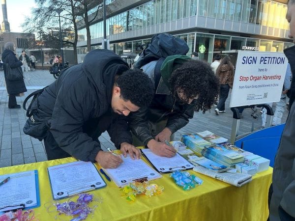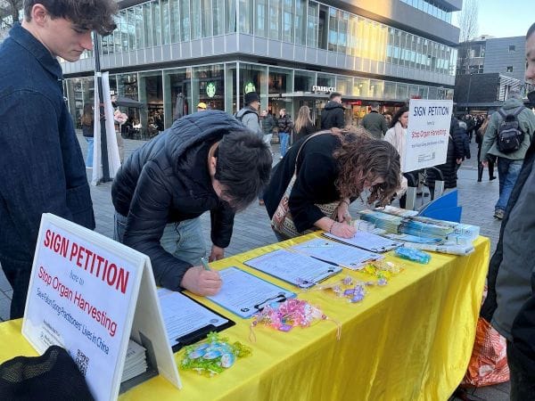 攝影愛好者巴斯・登布蘭德(Bas Cdenbrander)簽名支持反迫害。