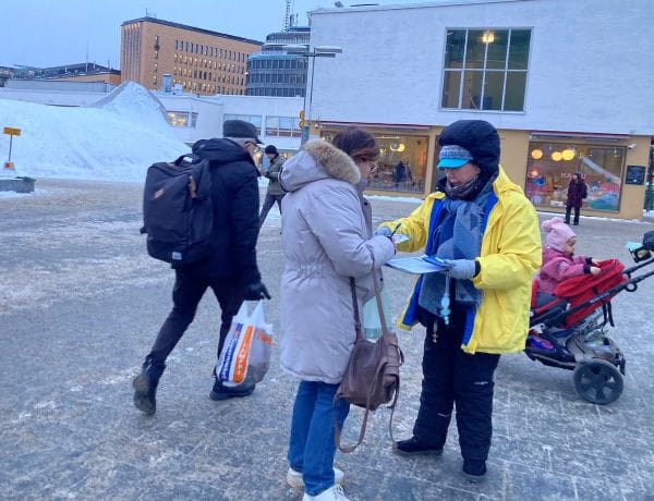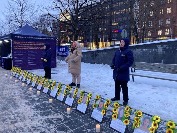 當天,芬蘭的法輪功學員在約攝氏零下 10 度的嚴寒中,在首都赫爾辛基市中心舉行了燭光守夜活動,向公眾講述中共對法輪功持續二十六 年的迫害事實(本文主圖)。學員們介紹,這場迫害導致大量修煉者遭受酷刑、致傷致殘,甚至失去生命,並揭露中共在中國境內持續發生的活摘器官罪行 ── 這一罪惡已滲透至社會多個層面。