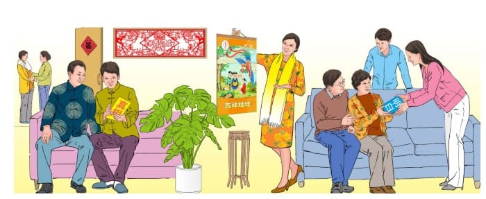 一次,我到八十一歲的鄰居大叔家,送給他真相年畫和福字吉祥掛墜。大叔雙手接過後高興地說:「我要把福字掛在最高處。」