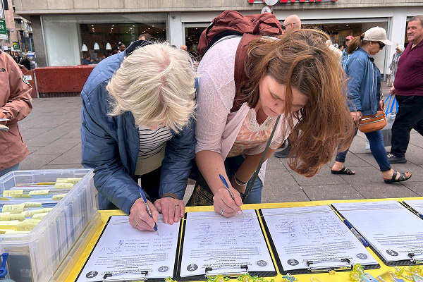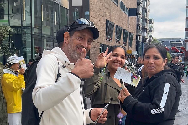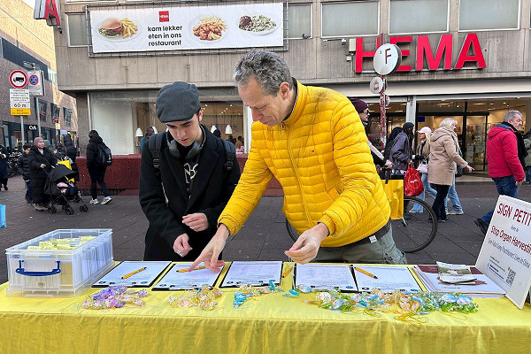 無論嚴寒酷暑,每到週末,法輪功學員都會在海牙市中心商業區(Grote Markststraat)傳播真相。來往的商務人士、學者、留學生、人權組織工作者、國際遊客在這裏聽聞真相,了解了中共對法輪修煉人持續至今的殘酷迫害。第一次聽說的人往往感到震驚,人們紛紛表達對法輪功學員的支持和欽佩。