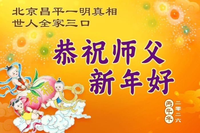 北京昌平一明真相世人全家三口恭祝師父新年好!