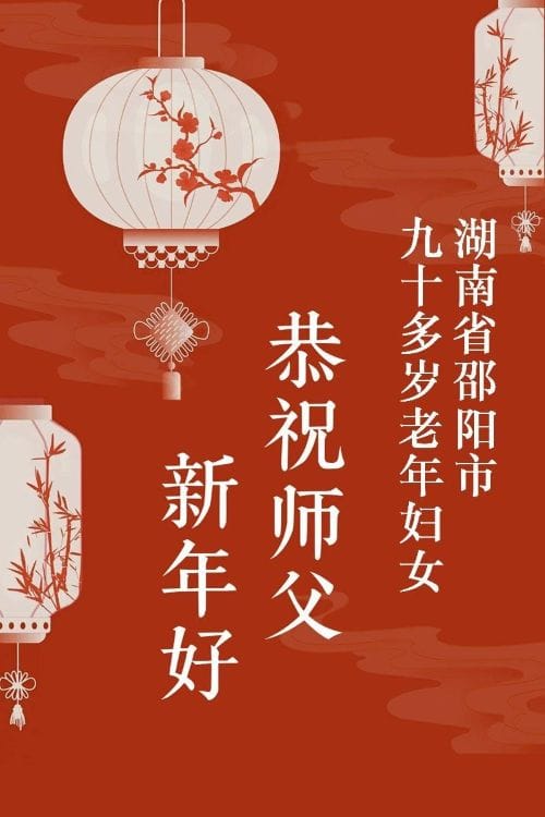 湖南省邵陽市一位九十多歲老年婦女恭祝李大師新年好!