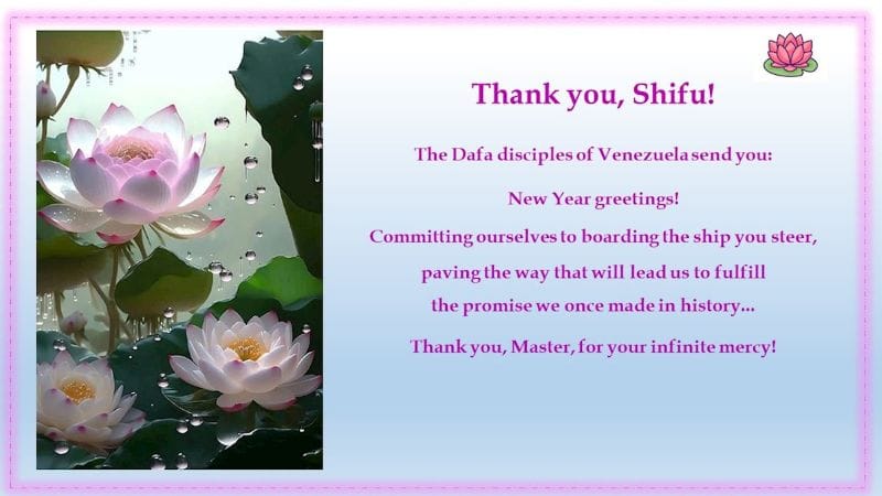 委內瑞拉大法弟子恭祝師父新年好!將在2026年繼續走在修煉之路上。