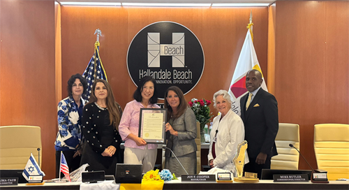 佛羅里達州哈蘭代爾海灘市長在市政廳頒發褒獎