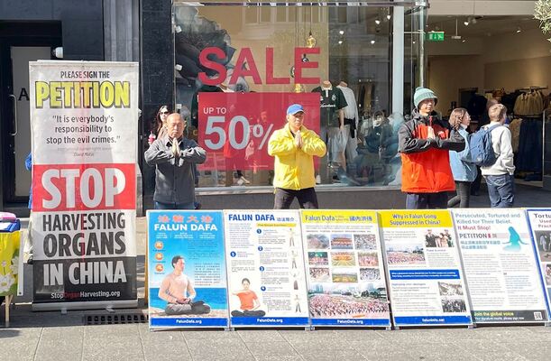 二月和三月的每個週末,愛爾蘭法輪功學員在都柏林市中心舉辦講真相活動,通過傳單、展板和徵簽,揭露中共殘酷迫害法輪功並活摘法輪功學員器官的罪行。伴隨著煉功音樂,展示法輪功的五套功法,傳遞大法的美好。許多人停下腳步觀看,更多人簽名表達支持。