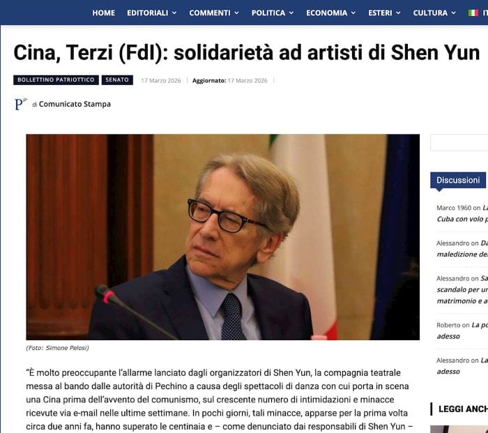 特爾齊一個月前在羅馬觀賞了神韻演出,他表示:「我衷心感謝所有藝術家、所有參與者、所有為此付出努力的人,甚至那些因無法在中國呈現這些作品而感到痛苦的人。我們期盼(神韻到中國上演)那一天早日來臨,期盼中國重獲自由。」