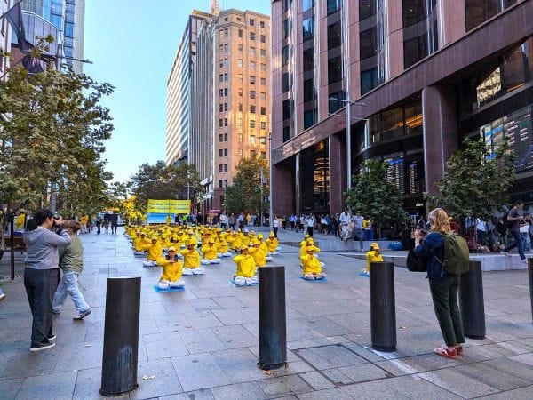 二零二六年四月十六日,澳洲悉尼法輪功學員在金融商業中心馬丁廣場(Martin Place),舉辦了紀念法輪功學員「4.25」萬人和平理性上訪二十七週年大型集會,並揭露中共跨國鎮壓罪行。