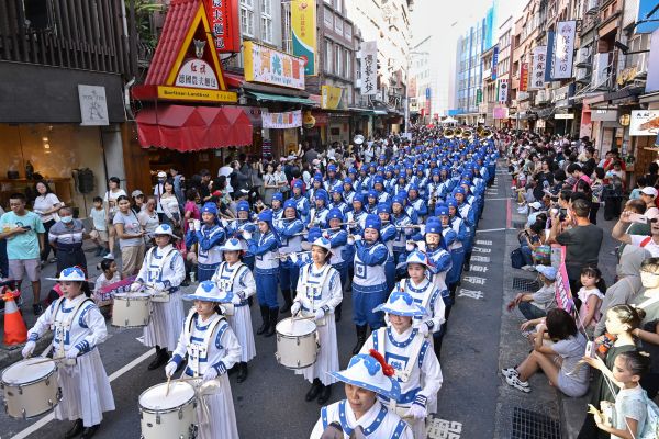主辦單位的主持人沿途介紹天國樂團:「每年都看到台灣天國樂團,他們的陣容永遠最堅強、最龐大,最整齊劃一,每次都是最壯觀的壓軸隊伍!感謝天國樂團,他們的精神與堅定的態度,為大家帶來正面能量,讓大家感受到純淨又堅定、充滿希望的力量,相信大家都有從音符中感受到。」