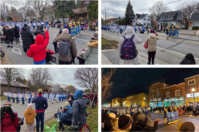二零二五年十一月二十二日至十二月六日的每個週末,由多倫多法輪功學員組成的天國樂團連續參加了皮克林鎮(Pickering)、亞積士鎮(Ajex)、萬錦市(Markham),博爾頓鎮(Bolton)和斯圖夫維爾鎮(Stouffville)的五個安大略省周邊城市的聖誕遊行活動,向市民們傳遞節日的祝福,展現大法的美好(本文主圖)。